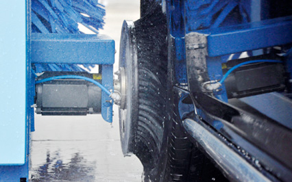 進(jìn)口意大利塑玻絲輪刷,根據(jù)光電開關(guān)感應(yīng)判斷車身位置,輪刷啟動(dòng)至輪轂位置,開始清洗,正反旋轉(zhuǎn)刷洗輪轂,電腦洗車機(jī)全程電腦全自動(dòng)控制輪刷伸縮。